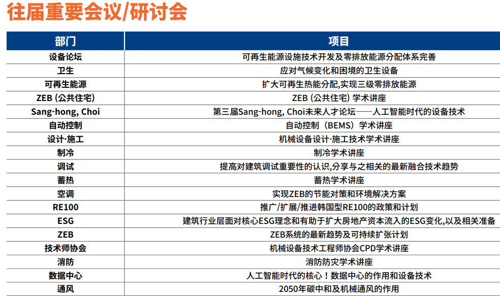 一年一屆的韓國國際暖通、空調(diào)制冷、管道、機械展覽會HVAC KOREA,該展覽會由韓國機械設(shè)備建設(shè)協(xié)會,韓國設(shè)備工學會,韓國設(shè)備技術(shù)協(xié)會,韓國設(shè)備設(shè)計協(xié)會,韓國機械設(shè)備技術(shù)工程師協(xié)會主 辦,LH(韓國土地住宅公社),韓國綜合建設(shè)機械設(shè)備協(xié)會和機械工程師協(xié)會贊助,并組織展館構(gòu)建,舉辦會議/研討會,以及 為機械設(shè)備專業(yè)人士舉辦交流招待會,是韓國唯一一個綜合性的暖通空調(diào)和管道展覽會,展示了從暖通空調(diào)系統(tǒng)、儲罐和泵到管道的全系列機械系統(tǒng),閥門、消防/衛(wèi)生/特種設(shè)備、數(shù)據(jù)中心等。這是一個獨特的暖通空調(diào)和管道行業(yè)的主要參與者聚集在一起展覽的平臺,網(wǎng)絡(luò),塑造該領(lǐng)域的未來。我們邀請您參加韓國首屈一指的展覽暖通空調(diào)專業(yè)人士!今年為第11屆.它引領(lǐng)機械設(shè)備行業(yè)最新技術(shù)和趨勢,匯聚眾多行業(yè)專家,此展將成為貴公司發(fā)展的基石